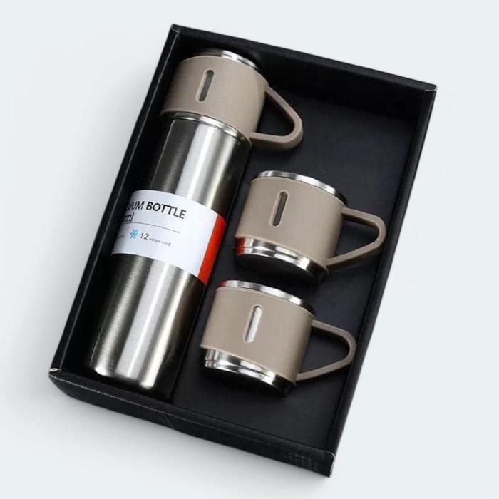 এই Vacuum Flask সেটের সাথে তিনটি টেম্পারেচার আকর্ষণীয় মগ রয়েছে। যার কারণে আলাদা করে মগ বা কাপে প্রয়োজন নেই ।