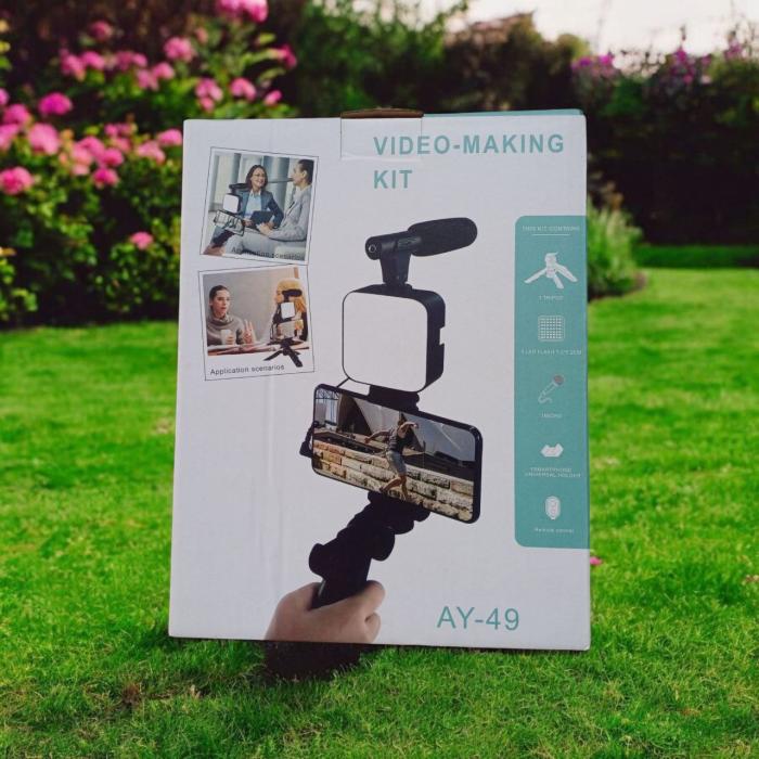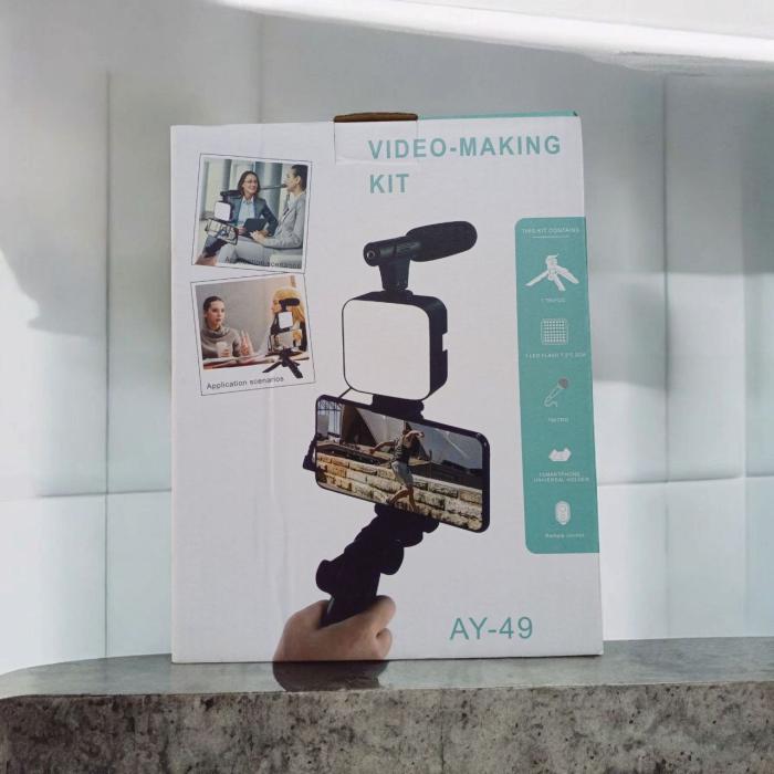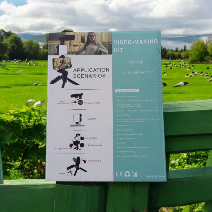 AY-49 ভ্লগিং ভিডিও মেকিং কিট মাইক্রোফোন LED ফিল লাইট মিনি ট্রাইপড রিমোট কন্ট্রোলের পণ্যের বিবরণ